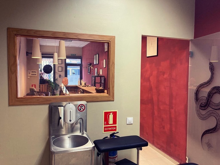Este acogedor espacio, decorado con mimo y con mobiliario de madera hecho a medida, ha sido durante años un refugio creativo para una tatuadora que ahora cierra etapa. El ambiente del local transmite calma, profesionalidad y buenas vibraciones, perfecto para quien quiera ofrecer un servicio personalizado y sentirse como en casa mientras tatúa.