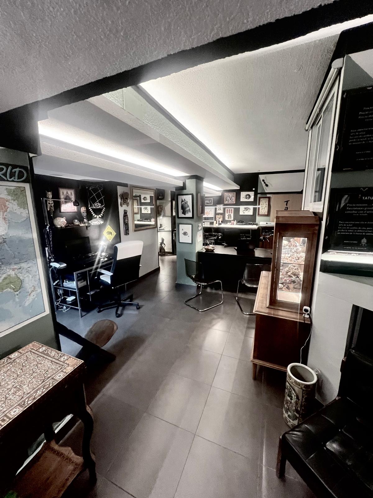 Con más de 20 años de historia y excelente reputación, este estudio ha acogido a más de 80 artistas nacionales e internacionales a lo largo de su trayectoria. Se traspasa por motivos de traslado personal, y no por falta de actividad. De hecho, es un estudio en pleno funcionamiento, con una clientela sólida y un nombre muy valorado en la escena del tatuaje madrileño.
