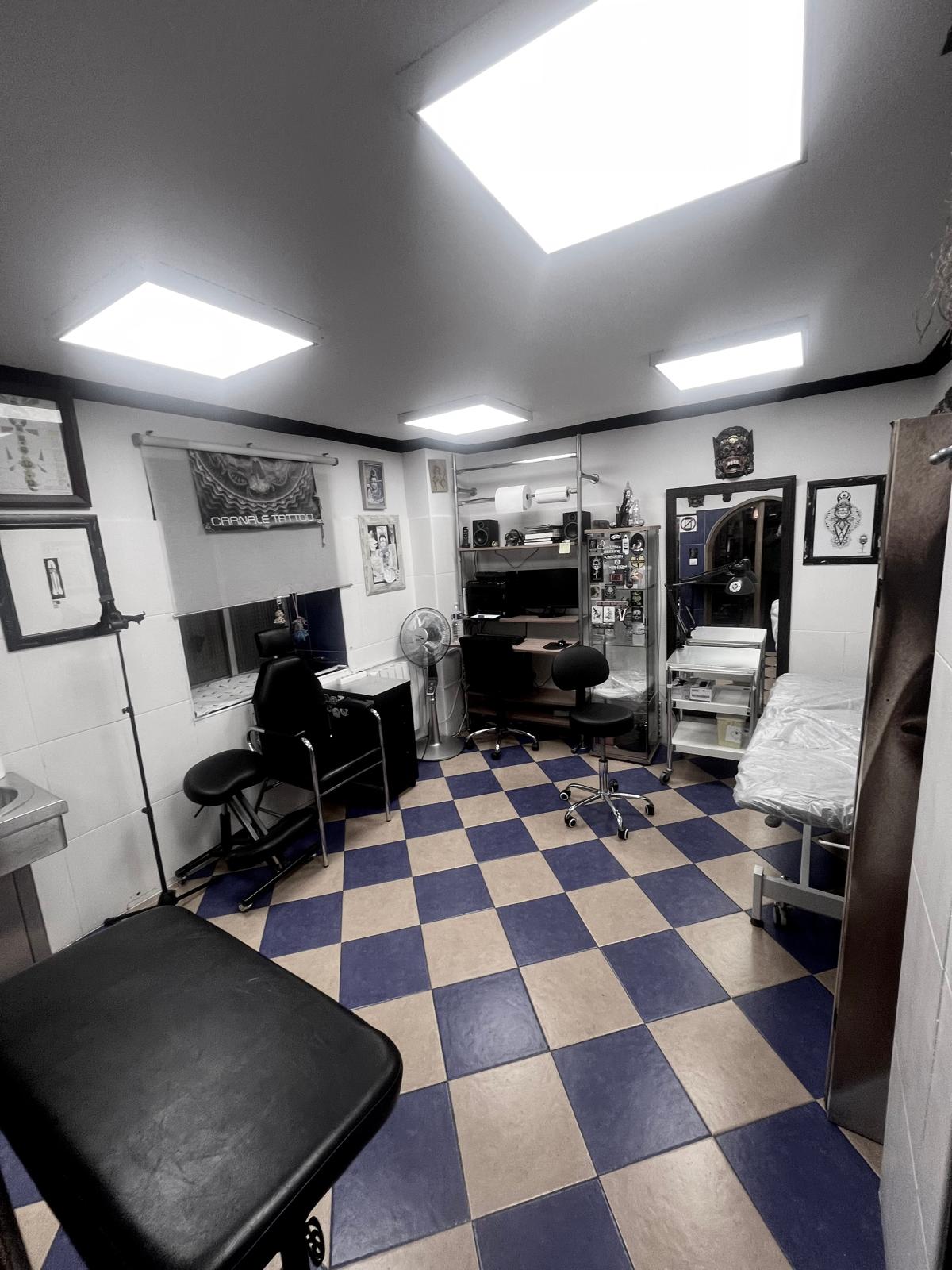 🔹 4 cabinas, una de ellas con triple estación de tatuaje